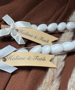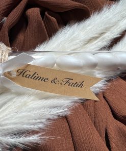 Glas,Etikett, Satinband (in Weiß und Krem Farbe)