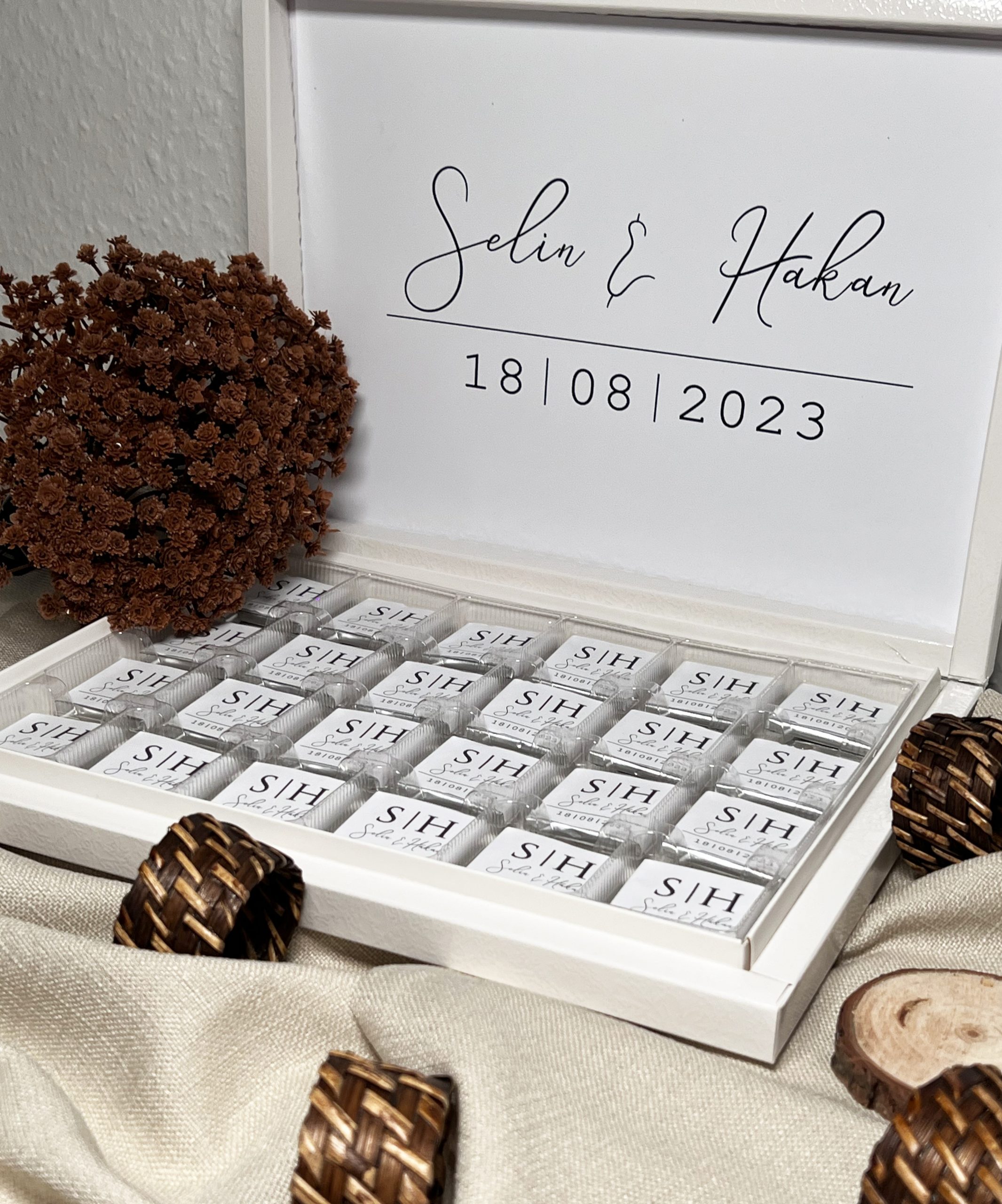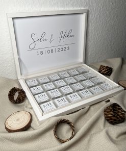 Diese Schokobox eignet sich ideal als Gastgeschenk, Tischdekoration oder edles Erinnerungsstück für Ihre Feier. 🎁💍